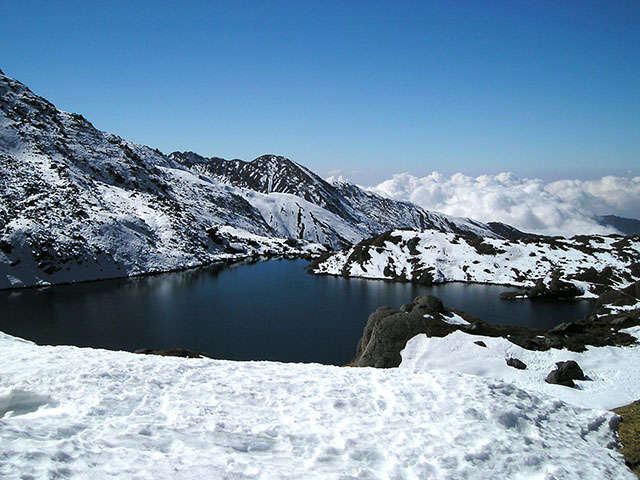 The Gosaikunda Lakes lie at approximately 4400m in Nepal’s Langtang Himal. They are an important pilgrimage site for Hindu. They are known as the abode of the Hindu deities Shiva and Gauri and the waters of the lakes are considered sacred. Many pilgrims make a 3 or 4 day trek to the lake but the steep terrain and time requirements mean that a helicopter is the best option for some visitors.