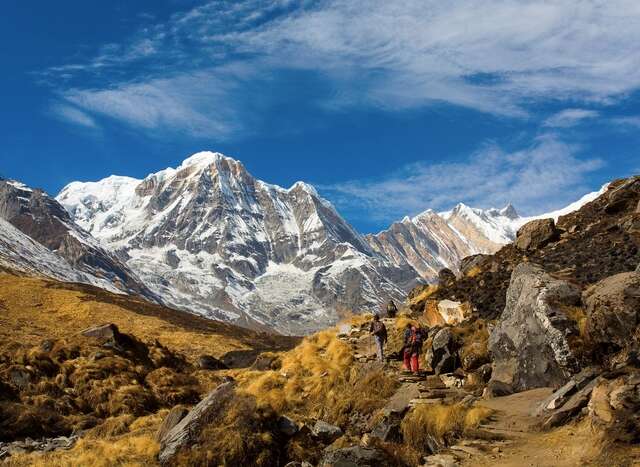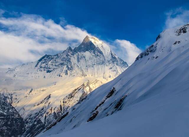 The breathtaking scenery and awe-inspiring wonders of the Annapurna Sanctuary await on this unforgettable 7-day trek. From our destination, the Annapurna Base Camp, you'll behold the craggy, shimmering south face of Annapurna I - the world's 10th-tallest peak! We'll steal glimpses of Machapuchare (Fishtail), called the "Matterhorn of Asia" and revered as sacred to the god Shiva, which is dotted by glaciers and limned in a sheer cliff face. As your guides guide you through the mountains and between cozy teahouses, you'll meet the kind, welcoming locals and come to understand that hospitality is limited by no language. The Annapurna Base Camp is a trek more attainable for many, as compared to the Everest Base Camp, and is therefore popular with adventurers with a varying range of experience.
